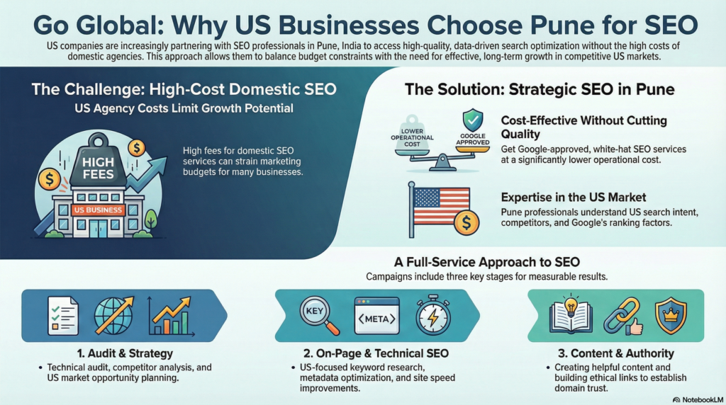 US businesses looking to scale efficiently are increasingly choosing affordable SEO services in Pune to achieve consistent search visibility without the high costs of domestic agencies. Pune has become a global SEO hub, offering skilled professionals, proven processes, and cost-effective execution aligned with international search standards.